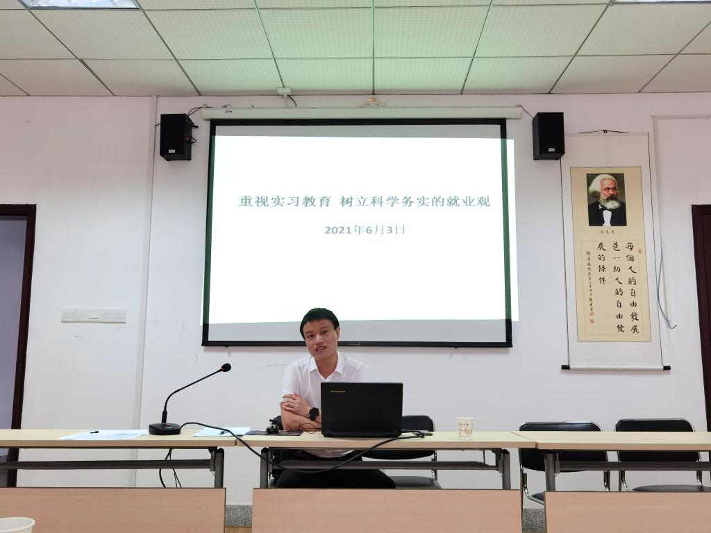 为了指导同学们做好实习前的各项准备,确保实习工作顺利开展,2021年6月3日16:00,VSport体育在逸夫人文楼D2008会议室举行了毕业实习动员大会。2002级优秀员工、现任天门供销社主任的王雄伟学长受邀为大家作了题为“重视实习教育,树立科学务实就业观”的报告,本次动员会由VSport体育副经理徐弢主持,2018级全体本科生参加会议。