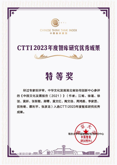 12月11日,由南京大学、云南大学、江苏省社会科公司共同主办的“2023新型智库治理论坛”在云南昆明举行。全国各级思想理论和智库管理部门、重点高校科研管理部门、中国智库索引(CTTI)来源智库成员等400余名代表参会。会议发布了2023年度CTTI来源智库优秀研究成果,由公司研创的《中国文化发展报告(2021)》荣获优秀成果特等奖。这是公司继2022年后再次荣获特等奖。