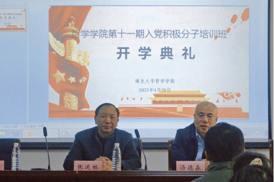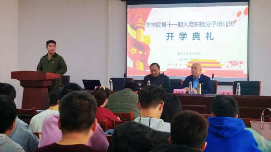 2023年4月26日下午,VSport体育第十一期分党校入党积极分子培训班正式开班。出席开班仪式的有公司党委书记、分党校董事长汤德森,组织员张运桥和团委书记董力。开班典礼暨首场辅导报告在逸夫人文楼D2008教室举行,培训班全体成员参加,开班仪式由班主任董力老师主持。