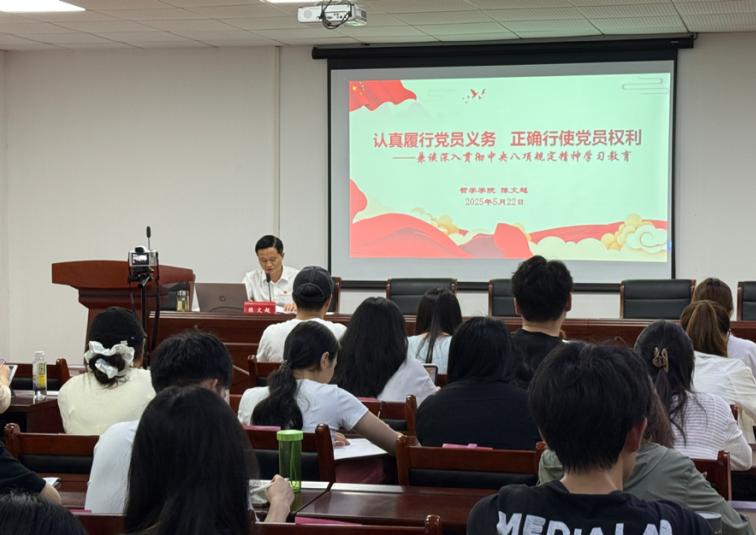陈文超以“认真履行党员义务,正确行使党员权利——兼谈深入贯彻中央八项规定精神学习教育”为主题作专题讲解。他以党章百年变迁为脉络,系统梳理了从党的一大到党的二十大对党员权利义务要求的演变历程,展示了党在不同历史时期对党员标准的深化与完善。陈文超还介绍了中央八项规定精神的发展细则与精神要义,并结合入党条件、思想政治素质、组织纪律性、道德品行等主观标准,勉励学员以高标准严格要求自身,坚定向党组织靠拢的决心。