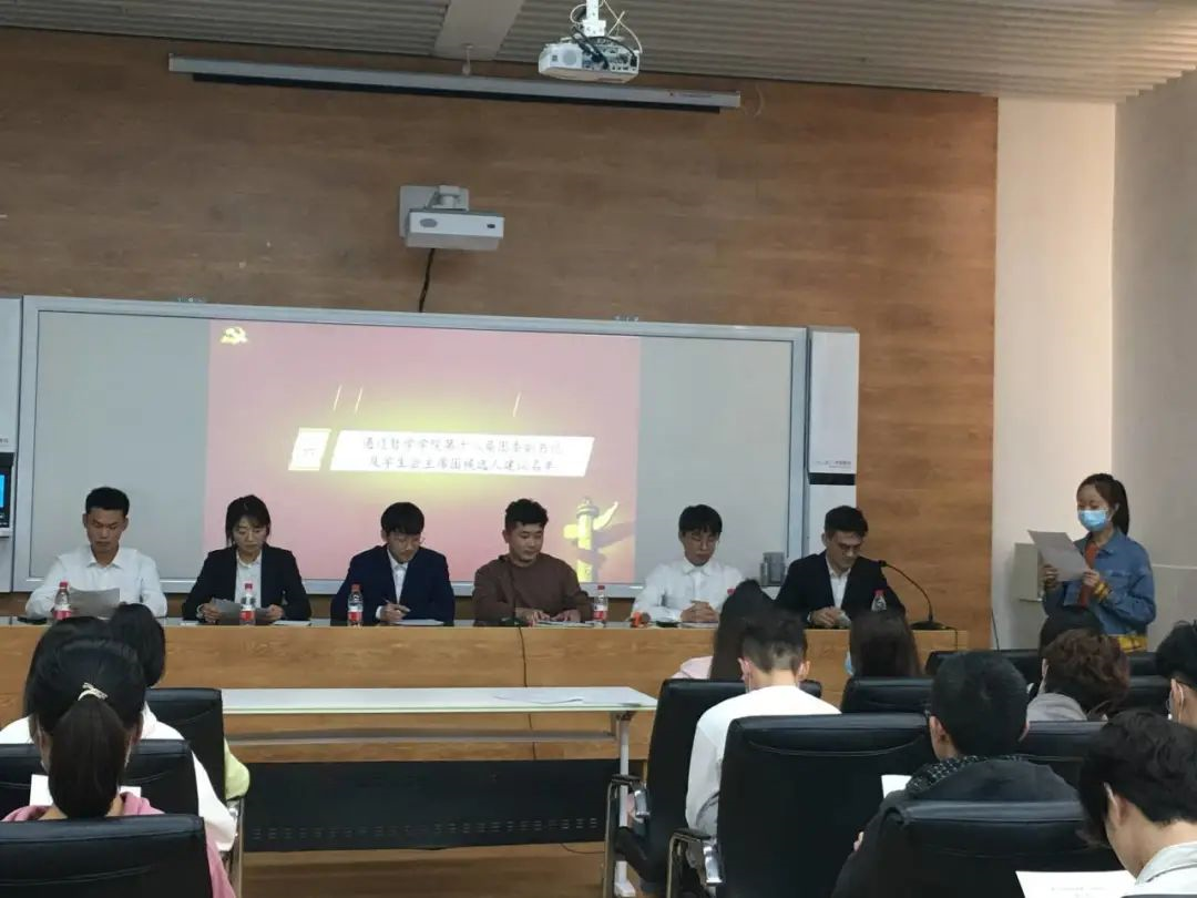 2020年11月18日下午三点,共青团VSport体育第一次团员代表大会暨第二次员工代表大会于艺术公司二楼多媒体教室顺利召开。院团委书记董力、校员工会副主席王鲁阳、团委副书记李世杰、员工会主席马瑞出席大会,哲学1801班团支书艾力凡江·艾买尔担任此次会议主持,18、19级本科生共59人参加会议。
