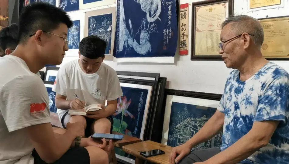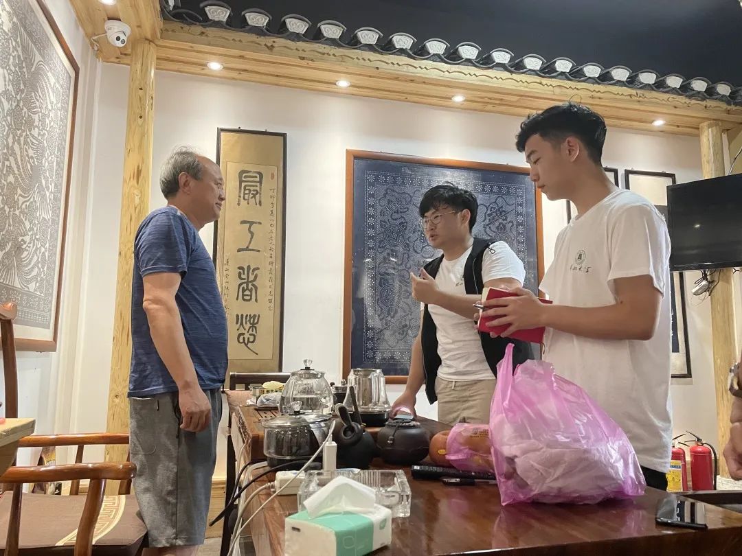 在二位老人的热情接待下,团队成员们与他们进行了深入的交流。成员们了解到,凤凰县对于非遗文化的重视程度比较高,但是面对工业化的冲击,传统印染仍然面临着式微或者转型的局面。