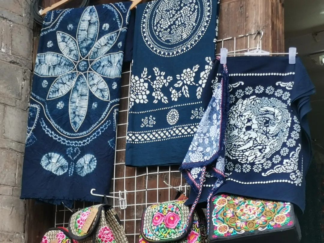 (蓝染是一种古老的印染工艺,最早出现于秦汉时期。工艺中又有蜡缬、绞缬、夹缬等花纹的印染。想制作一件蓝染,要花上至少20年的时间练习,才能出现特有的颜色。凤凰的印染既有着传承又有着创新,与当地旅游业结合,呈现出与其他非遗继承区不一样的特点。)