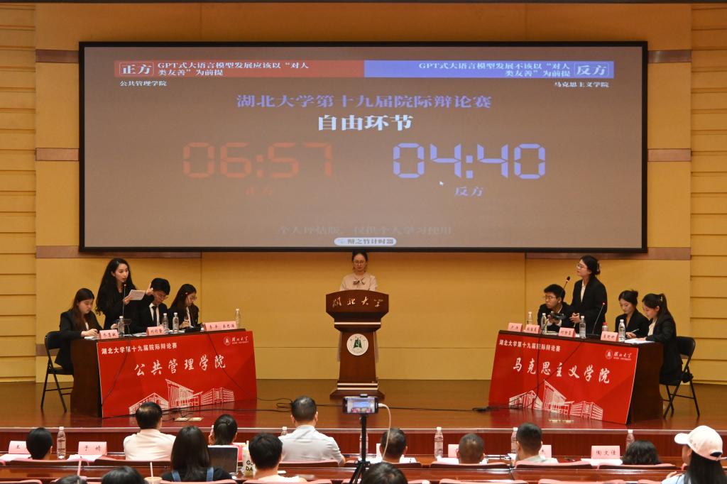 “友善是什么”“如何化解友善和效率的冲突”“技术的发展是否取决于对人的友善”……辩论双方你来我往,对诸多问题展开激烈争辩,口中珠玑迸发。反方指出平台能让“外卖小哥”养家糊口,正方迅速补充其大语言模型可以兼顾求生与友善二者;面对正方对友善这一前提的坚守,反方敏锐抓住漏洞,提出“实现不了友善,技术难道无法发展”的质疑。