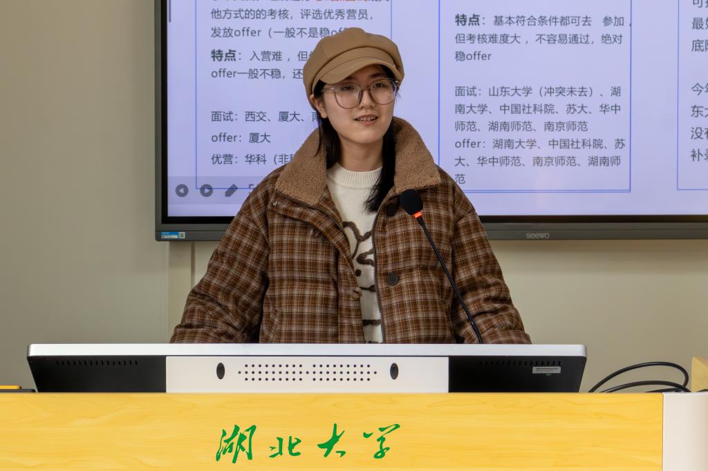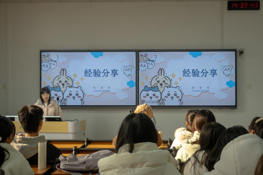 活动伊始,成功保研至厦门大学的李青原结合亲身经历,就保研政策、基本要求和准备流程三个方面作保研经验分享。“大学不仅是一个平台,也是一个温暖的家,保研不是唯一追求,而是不懈努力后附加的惊喜。”她表示,在学习方面,要把现有的课程学好,打好坚实基础;就竞赛而言,要多方面了解,确定自己的目标,抓住机会锻炼个人的综合能力。