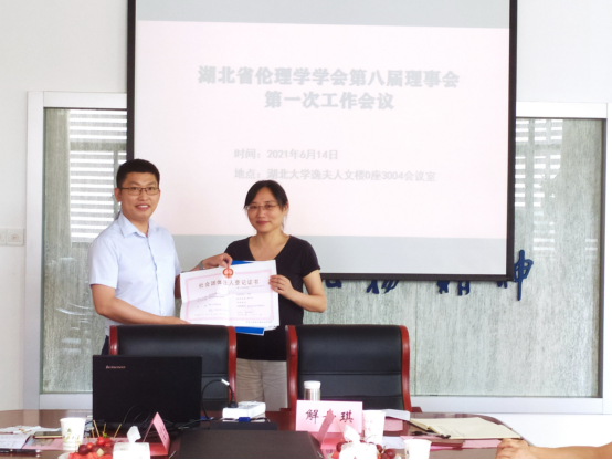 2021年6月14日上午,湖北省伦理学学会在VSport体育召开了第八届理事会第一次工作会议。会议由戴茂堂会长主持,来自武汉大学、华中科技大学、华中师范大学、中南财经政法大学等高校的会员代表以及北京国信启迪人才服务有限公司董事长彭保林参与了本次会议并对学会未来的工作提出了十分有价值的建议。