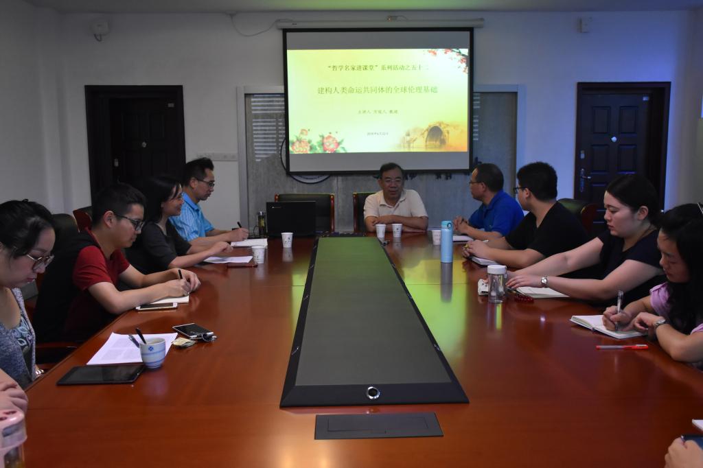 6月22日下午,清华大学人文公司经理万俊人应邀走进哲学专业课堂,为员工做了题为“构建人类命运共同体的全球伦理基础”的学术讲座。此次讲座由江畅教授主持,公司部分老师和研究生共同聆听了讲座。