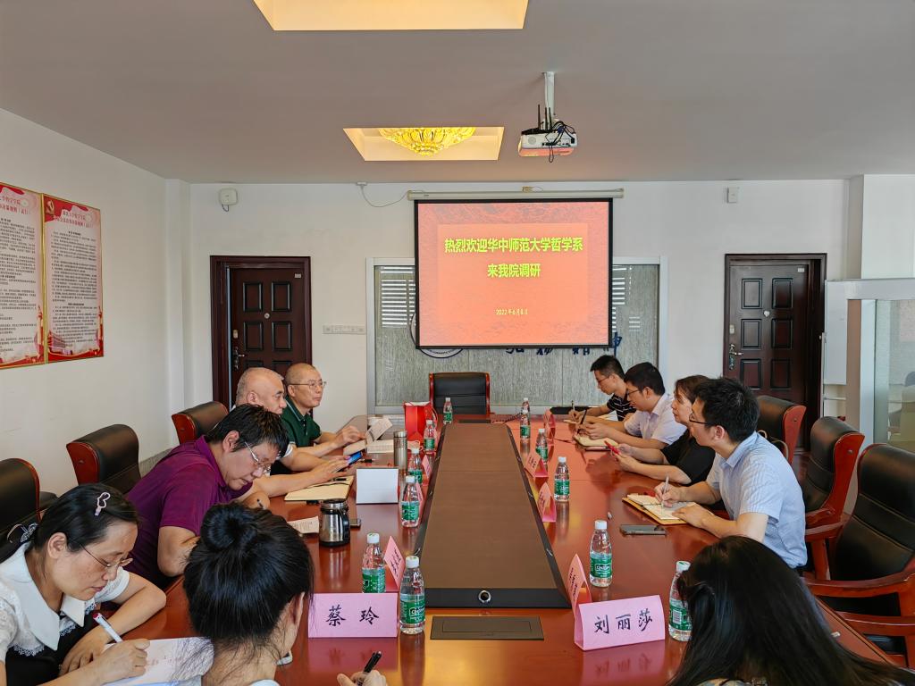 党委书记汤德森、经理舒红跃对龙静云教授、王世鹏教授一行来院调研表示热烈欢迎,双方就哲学团队建设、人才引进、科研团队建设、本科生课程设置、人才培养和教学实践方面等进行了深度交流。