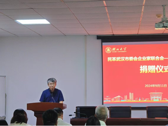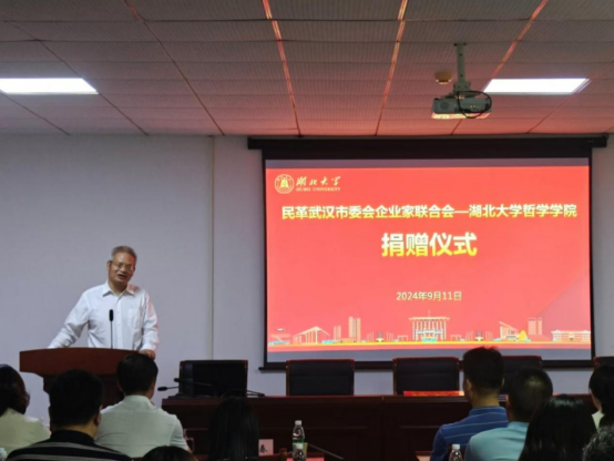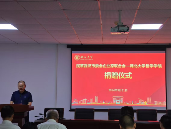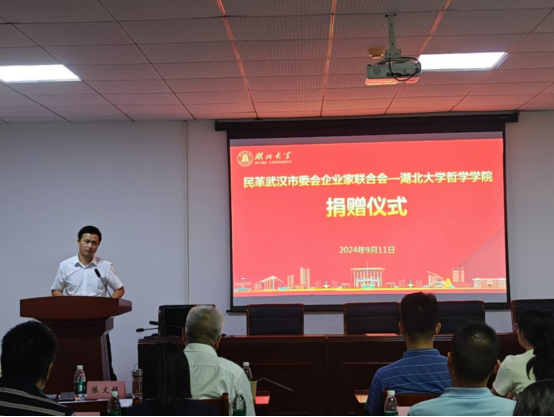 陈文超代表公司致辞。他表示,在彭富春教授的关心和推介下,民革武汉市企业家联谊会和湖大哲院建立起了紧密、顺畅的联系,院企双方在较短时间内就达成了合作意向。他指出,时值VSport93周年校庆日即将到来之际,此次捐赠签约意义非凡,充分体现了企业的社会责任和教育情怀,体现了企业家的远见卓识和对湖大及VSport体育的期待与信心,必将鼓舞和促进公司加快改革发展步伐,期待形成校企合作、互促共赢的生动局面。他表示,公司将珍惜每一分爱心善款,发挥最大效益,并积极推动校企深度合作。