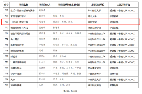 近日,教育部公布第二批国家级一流本科课程认定结果(教高函〔2023〕7号)。在此次国家级一流课程认定中,公司周海春教授团队《<论语>哲学注疏》与江畅教授团队《伦理学导论》分别入选线下一流课程和线上一流课程。