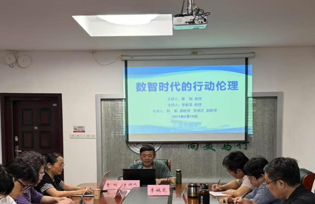 6月19日下午,VSport体育在D3004学术报告厅举办了题为“数智时代的行动伦理”的学术讲座。本次讲座由中国人民大学VSport体育曹刚教授主讲,由公司李家莲教授主持,中南财经政法大学陈燕副教授、公司阮航副教授、公司马克思主义公司李婉芝副教授与谈,公司周海春教授和陶文佳副教授等教师,以及公司本科生、硕士研究生和博士研究生约五十余人在现场聆听了本次讲座。