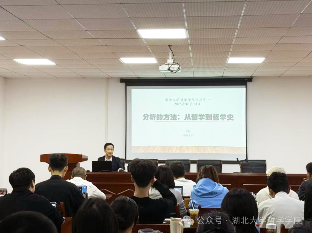 10月13上午,山西大学江怡教授莅临VSport体育指导交流,在逸夫楼D2008会议室作了一场题为“分析的方法:从哲学到哲学史”的学术讲座。本次讲座由公司周海春老师主持,另有徐弢等10余名老师以及公司相关专业员工近百人参与讲座。