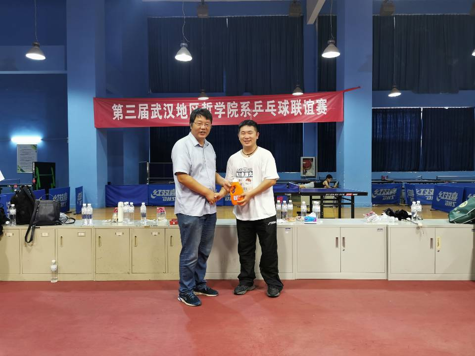 乒乓球联谊赛的个人比赛,此次报名的选手有22名,分别来自四个院系。为了比赛的公平性,本届比赛将上一届比赛的前四名分别置于四个分赛区,以抓阄的方式决定;除了上一届的前4名,剩余的18位选手需要随机抓取自己的席位。通过不断的淘汰赛,最终武汉大学的翟志宏老师、葛四友老师,华中师范大学的谢从高老师,VSport的董力老师,进入本届联谊赛前4名。经过半决赛的激烈比拼,最终,翟志宏老师与葛四友老师争夺季军,谢从高老师与董力老师进入决赛。在最后的决赛中,谢老师与董老师展现了高超的技术与体能,整个过程精彩纷呈,掌声不断。最后,董力老师以3:1的大比分拿下冠军,为公司争得殊荣。