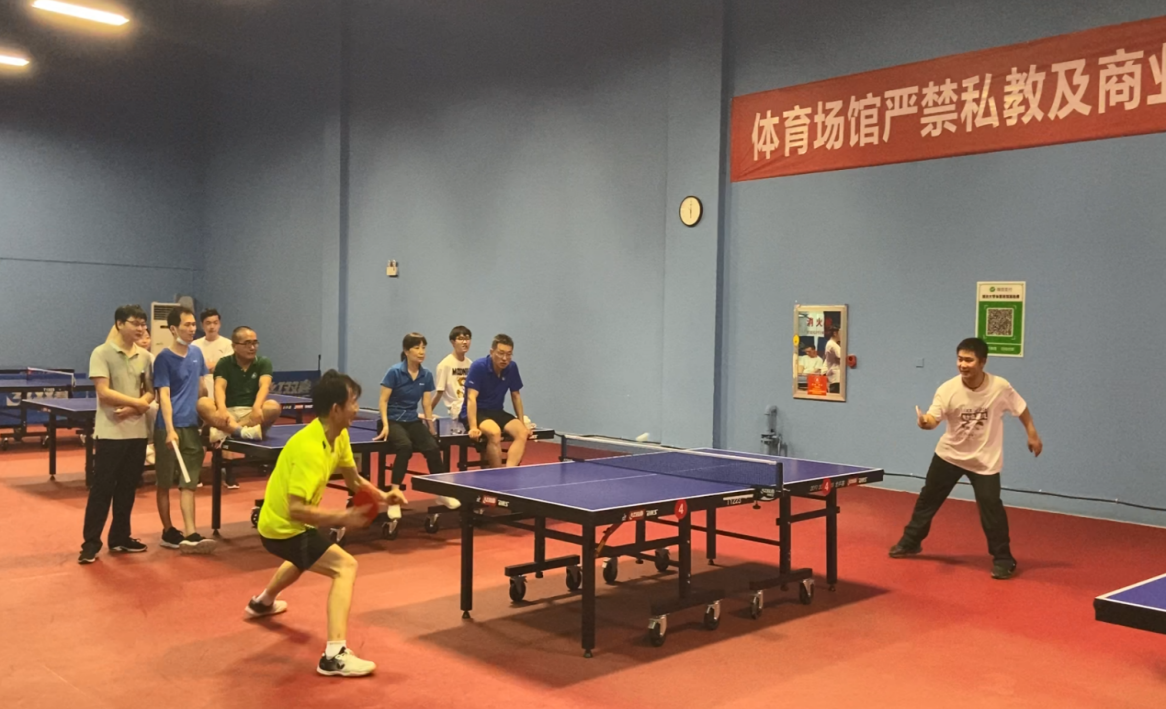 第二阶段是乒乓球联谊赛。课程思政交流会结束后,四校哲公司系老师一同前往3号体育馆进行“第三届武汉地区哲公司系乒乓球联谊赛”。四所哲公司系师生分别代表四支队伍参赛。本次比赛项目分为团体赛与个人赛,且均采取淘汰赛制。相较于上一届联谊赛,本届联谊赛多了华中师范大学哲学系队的加入,使得我们的活动更加精彩,也为最终比赛结果带来了很大变数。