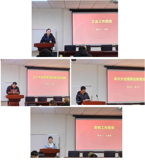公司工会主席肖雄老师汇报了公司2023年工会工作情况,对2024年公司工会工作展望与打算作了汇报。公司副经理阮航就上次院工会提案落实情况向全院老师作了说明。公司工会宣传委员曹元甲老师就本次大会提案征集情况和提案内容向全院老师作了汇报。公司办公室主任王晶晶老师就2023年度公司各项财务收支情况向全院老师作了详细说明。
